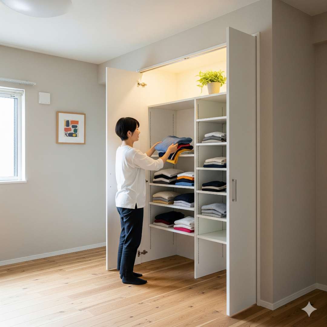さらに厄介なのが、クローゼットや押入れです。ここは扉で閉め切られているため、空気がよどみ、湿気がこもりやすい場所です。加えて、外壁に面して作られていることが多いため、壁が非常に冷たくなりやすい。つまり、「温かく湿った空気が閉じ込められ、冷たい壁に触れやすい」という、結露にとってこの上ない好条件が揃った空間なのです。