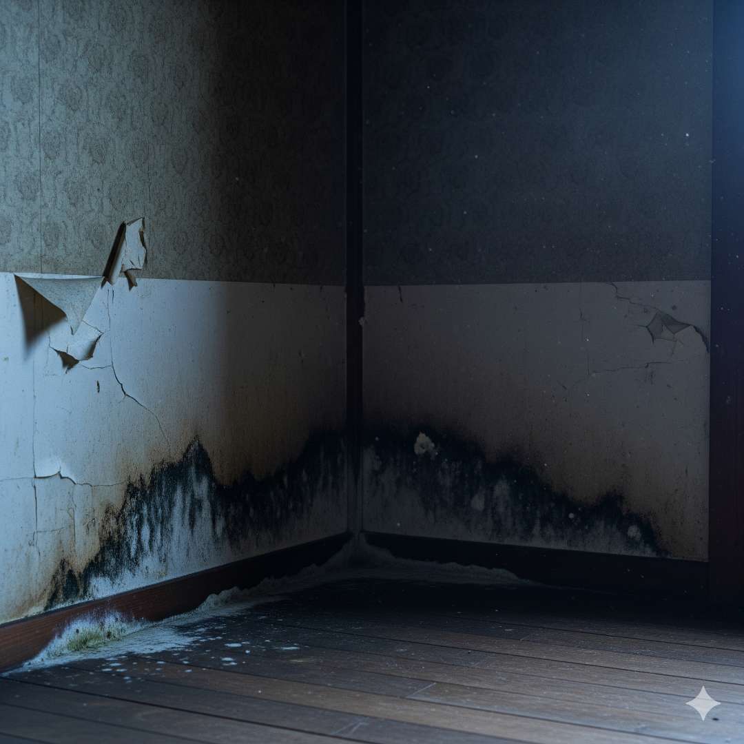 そして、最も知っていただきたいのが、目に見えない場所で起こる「内部結露」の存在です。これは、壁紙の表面だけでなく、壁の「内部」、つまり石膏ボードの裏側や断熱材の中で結露が発生してしまう現象です。壁の内側が常にジメジメしているため、いくら表面のカビを拭き取っても、内部から次から次へとカビが再発してくるのです。これが、皆様の戦いが終わらない、本当の理由でした。