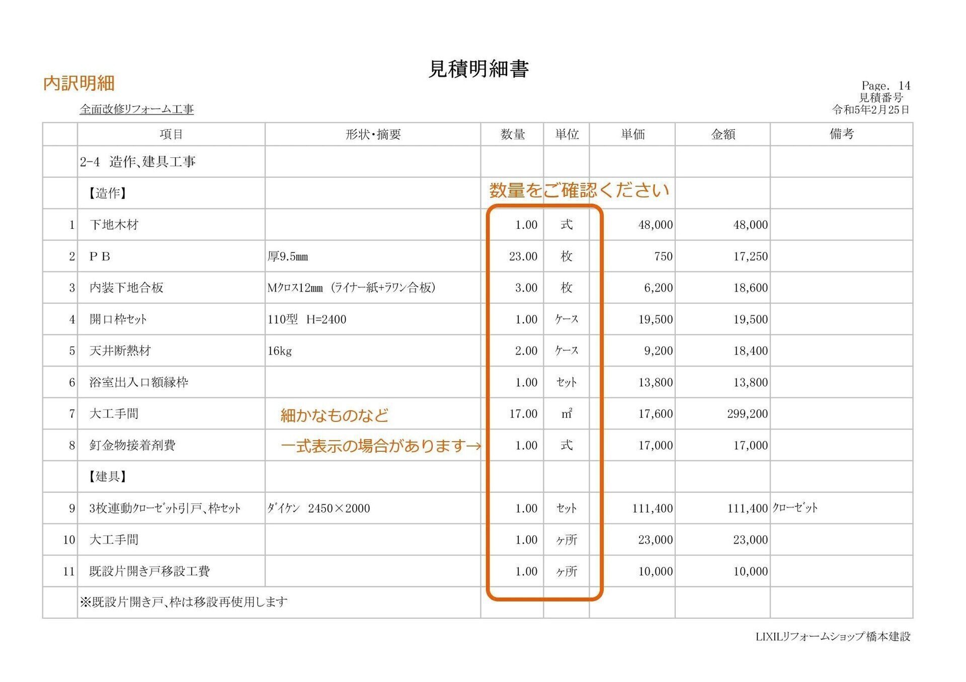 45. 取付費: 工事を行う職人さんの人件費です。工事の種類によって異なります。