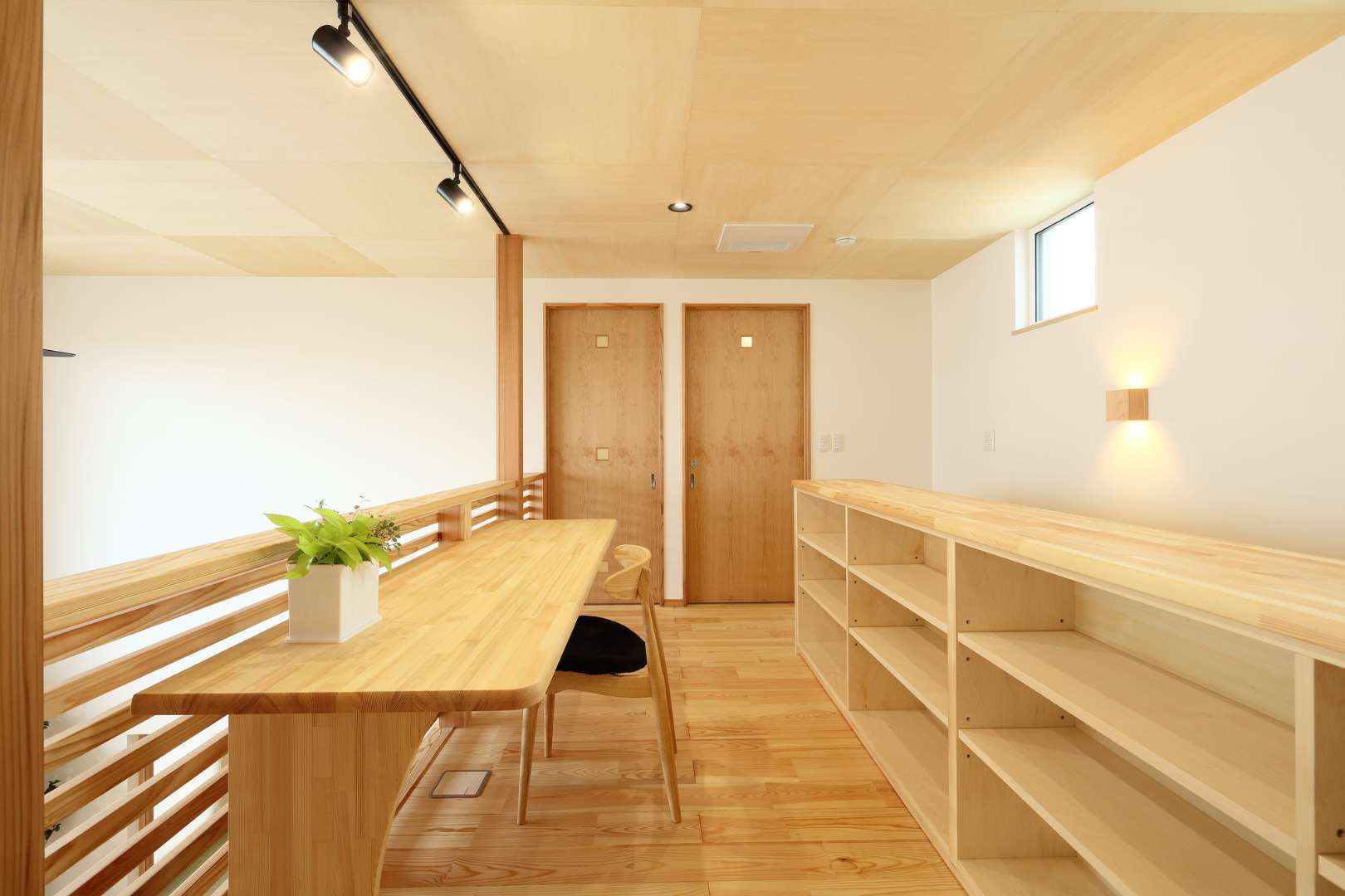 壁面収納は、床のスペースを圧迫せず収納容量を増やせるため人気があります。天井まで一面に造作すると、衣類や書類、家電などをまとめて管理でき、部屋全体をすっきり見せる効果があります。